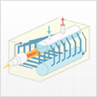 ボイラは消防法などにより、設置場所の規制を受けます。そのため、ボイラ室に設置するのが一般的です。都市ガスボイラ焚き貫流ボイラは、コンパクトで、油タンクも不要であり、スペースの有効活用や分散設置が可能です。