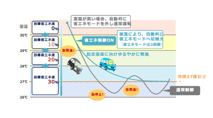 省エネ効果はお客さまの使用状況や管理状況によってことなりますが、省エネ制御機能の利用により、10~20%の省エネ効果が期待できます。