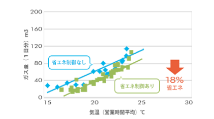 設定温度に応じてガスヒーポンをエコドライブの要領で省エネ運転を実施します。省エネモードへの切替は、最適なタイミングでエネフレックスが自動で行います。快適性を損なわず、無理のない省エネ達成を支援できます。