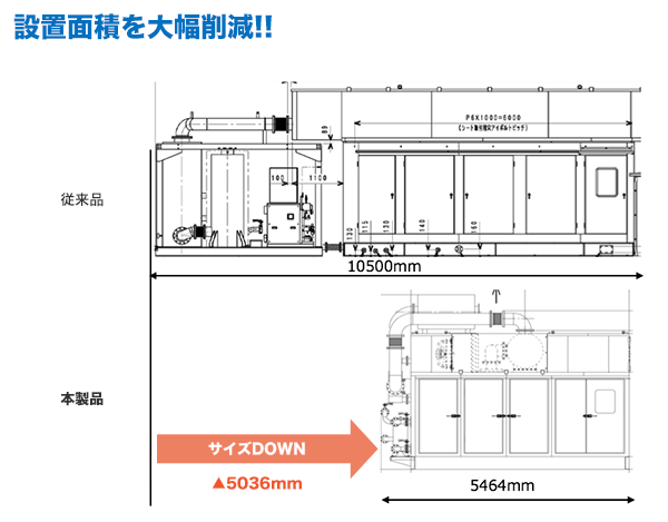 パッケージ内レイアウトを見直し最適な機器レイアウトとしたことで、従来品に対して設置スペースを20%以上の削減しました。