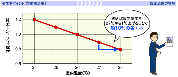 季節や時間帯で空調機の設定温度をこまめに設定することで、エネルギー消費量の削減が可能です。